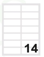 SAMOLJEPLJIVE etikete Megastar bijele boje prilagođene za uporabu s laserskim, ink-jet ili fotokopirnim aparatima u crno-bijeloj varijanti ili u coloru. Pakiranja sadrže 100 listova.- veličina naljepnice: 99,1x38,1 mm – 14 na listu
